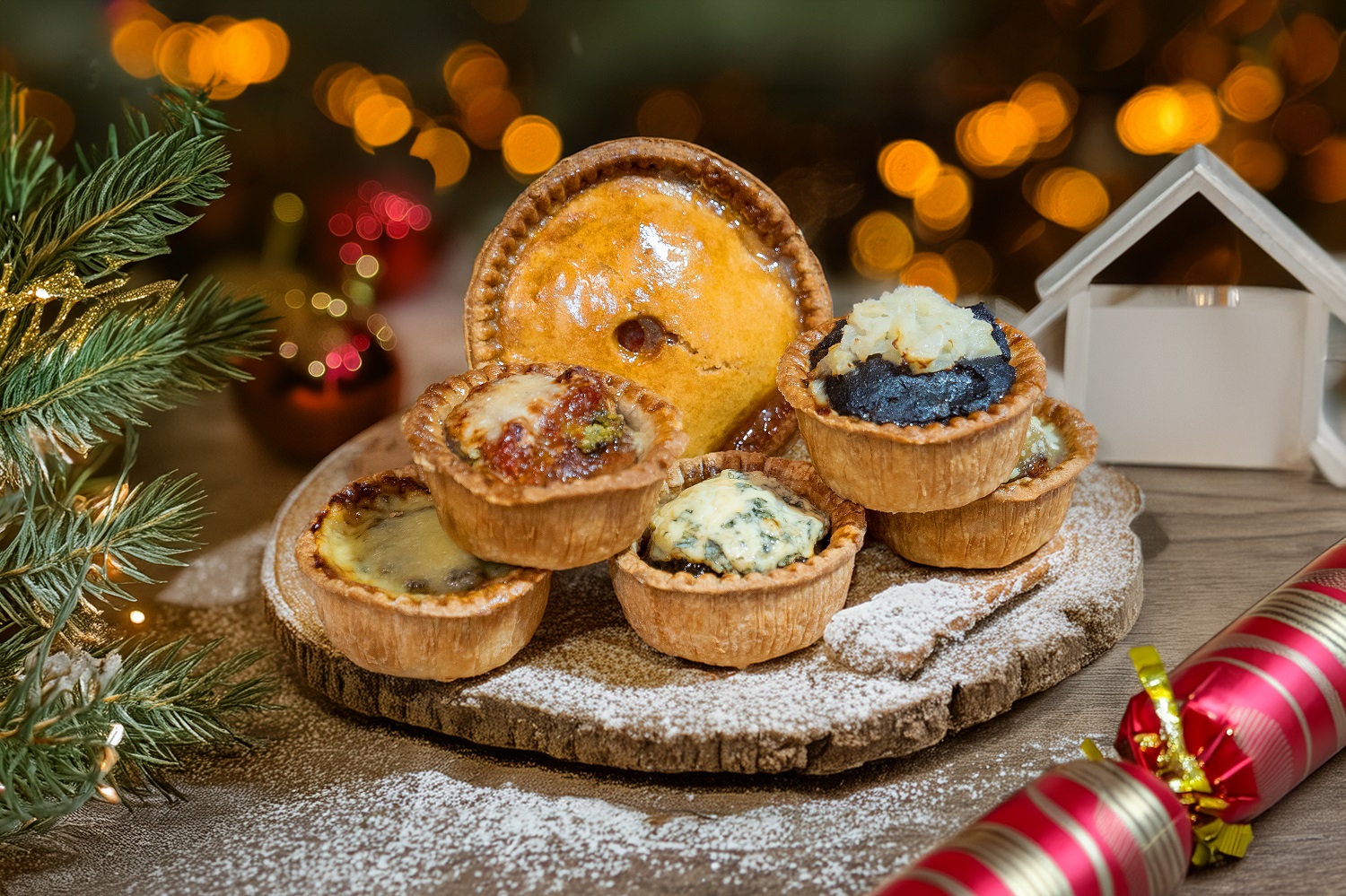 HOMEMADE LARGE PORK PIE: Ingredients: Pastry contains flour (WHEAT), lard, salt. Filling contains pork pie meat (33% pork, breadcrumb (WHEAT), salt, flour (WHEAT), rusk (WHEAT), dextrose, potato starch, stabiliser (E450), flavour enhancer (E621), spice extracts, preservative (E250), herb extract), gelatine. Pastry glaze contains maize starch, dextrose, stabiliser (E466), colours (E160a, E150c).
